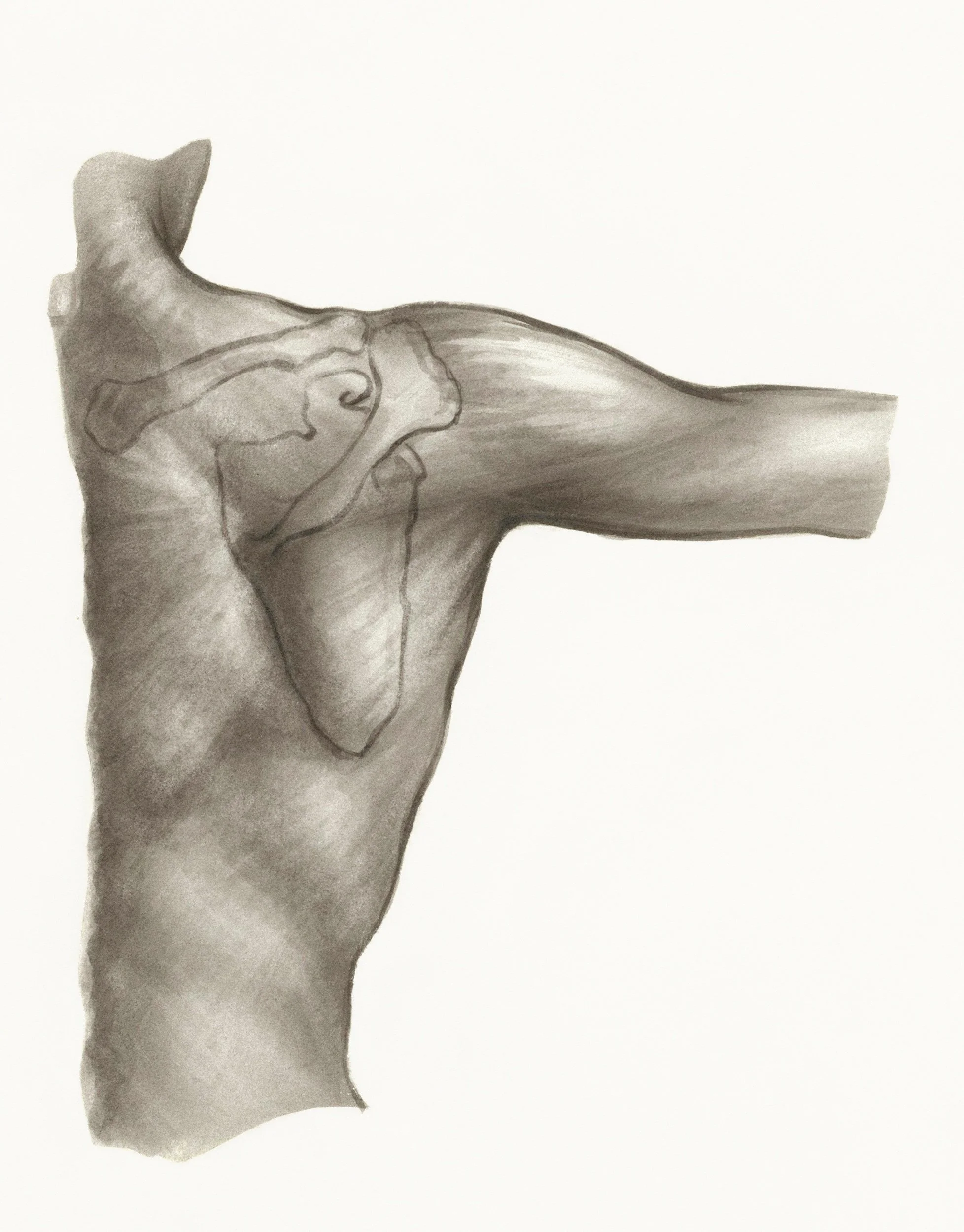 Bones: The humerus (upper arm bone), scapula (shoulder blade), and clavicle (collarbone).